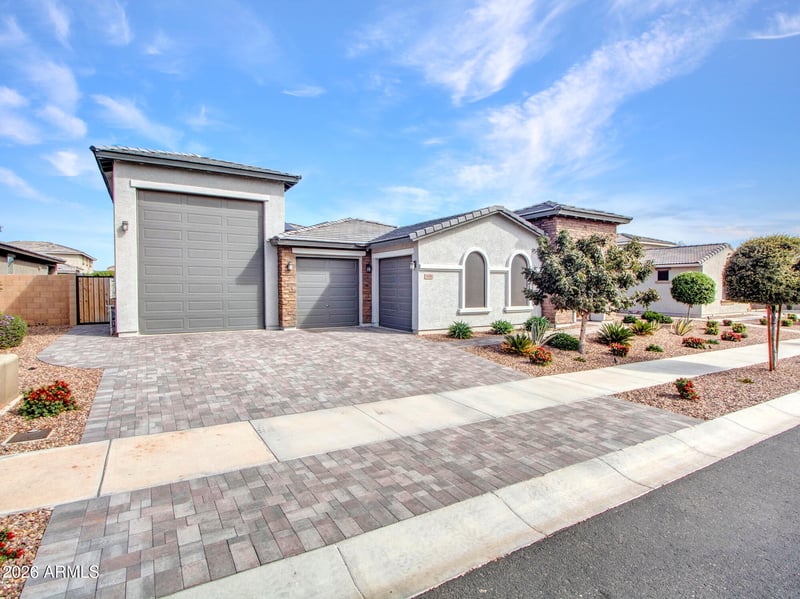 Listing details for 14350 Boca Raton Rd, Surprise, AZ 85379 : Furnished Upgraded Elegance in the heart of Surprise. This immaculately equipped and maintained home can be your daily luxury or destination retreat! Curb appeal starts with the newly installed flush paver parking and walkway, and pristine and easy-care flora. Inside you find new tile, carpet, and paint. Enjoy the open floor plan accented with sophisticated decor. The CHEF's kitchen will amaze you with the large $30K waterfall island; natural Quartzite Stone with actual Ruby gemstones engrained...professionally sealed for life; New farmhouse sink, Soft-Close cabinet doors; GE Cafe series refrigerator, and appliances; Hi/Lo accent lighting and large pantry. The primary suite welcomes you with spacious layout, double vanity quartzite counter, step-in shower and large walk-in closet. Split layout provides your guests or family members their own bedrooms/bonus room and full bath with double vanity quartzite. The large mud room/laundry room offers extra storage and new utility sink. Energy efficiency, style, and ease of care are found in the upgraded 4" plantation shutters, and solar sunscreens throughout the house. Combined with the 36-panel solar system and 3-zone HVAC, personalized comfort is met with cost-savings. RV owners, car enthusiasts, hobby-goers, etc will love the massive RV garage with 50-amp power, water tap, and dump site; Heavy-duty overhead storage shelving, Large built-in cabinets with work bench, solar screen windows, insulated garage doors, it's own MINI-Split system for year-round comfort and climate-controlled storage. Stay informed with news and entertainment on the wall-mounted TV (all house TV's are included). Continue your cost savings and QoL with the Tankless-Gas water heater, whole home water softener, and reverse osmosis systems. NOW....let's introduce the newly designed and installed $80K backyard!! Step outside on the flush paver extended patio; powered gazebo covering the custom glass bead natural gas fire pit and seating (Fire & Water) The One-of-A-Kind Elite Designs hand-cut stone waterfall feature coats the ambiance with soothing and relaxing sounds. The new turf grass is wrapped in touches of class with deco lighting, stones, palms & flora, and white rock. In addition to the gated entrance security, the home has RING cameras positioned around the property. This lovely home is nestled in the exclusive W Ranch gated community: you will find shopping, entertainment, and dining only a few minutes away....The Prasada, MLB Spring Training, White Tanks Mtns, and Luke AFB. Jump on the nearby Hwy-303 for a quick tie-in to Phoenix, Lake Pleasant, SoCal, Vegas.....