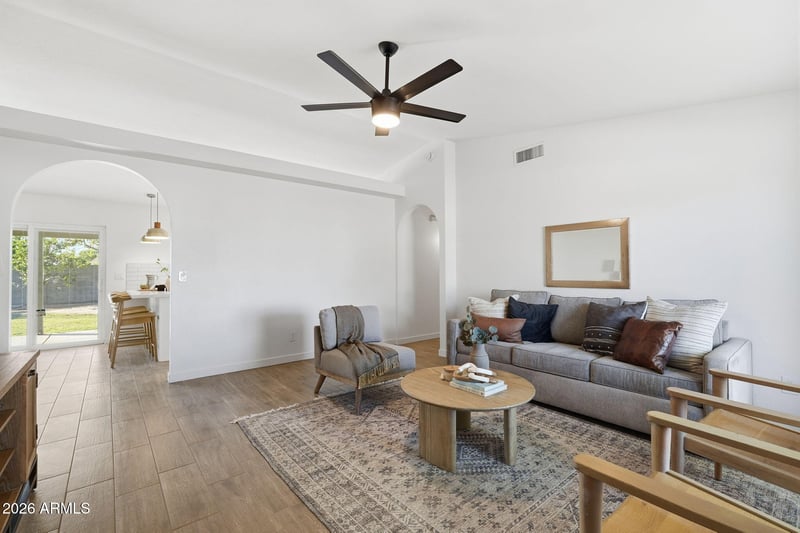 Listing details for 1436 Ananea St, Mesa, AZ 85207 : This move in ready 3 bed , 2 bath home has been tastefully updated w/ fresh paint inside & out & continuous wood look tile flooring throughout. The inviting living room flows naturally into the formal dining area & onward to the kitchen. The kitchen features new cabinetry, quartz countertops, tiled backsplash & stainless steel appliances. The primary bedroom includes an updated en-suite bath w/ a new vanity & modern finishes. Step outside to enjoy the backyard oasis, complete w/ a covered patio, a sparkling blue pool w/ a new pool pump, & an above-ground hot tub. PLUS NEW HVAC!!