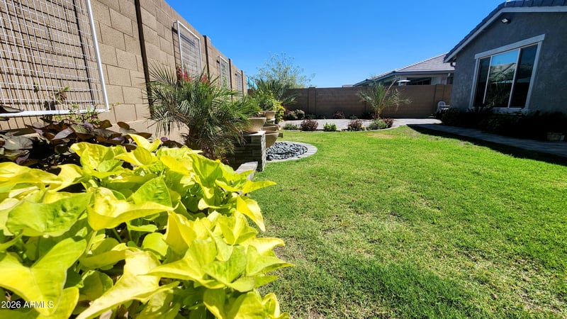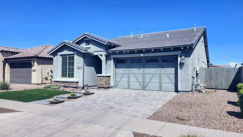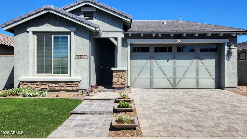 Listing details for 14400 Bloomfield Rd, Surprise, AZ 85379 : Beautifully designed and well-maintained 4 bed, 3 bath home in Marley Park, directly across from a community park. The fourth bedroom features a private bath--ideal for guests or multi-generational living. This turn-key home offers great curb appeal, mature landscaping, a 2-car garage with epoxy-finished flooring, and a versatile bonus room. Inside, enjoy a modern layout with formal dining, wood-look tile, and a bright great room. The kitchen shines with white cabinets, stainless steel appliances, subway tile, gray countertops, an island with breakfast bar, plus reverse osmosis. A whole-house water filtration system adds comfort. The spacious primary suite includes a full ensuite. The upgraded backyard features pavers, ambient lighting, a new watering system, and a relaxing water feature--