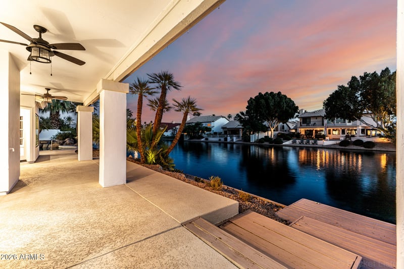 Listing details for 1441 Bahia Ct, Gilbert, AZ 85233 : Wow! Your dream begins in this remarkable waterfront estate nestled on a premium cul-de-sac! This 3-bedroom home displays a 3-car garage & manicured landscape. Sheer beauty & mesmerizing attention to detail are found inside, accented by tile flooring, soaring vaulted ceilings, bountiful natural light, & stylish light fixtures. Highlights include a large living & dining room, & an impressive great room, centered around a cozy fireplace that adds warmth & character. Spotless kitchen, a cook's delight, fully equipped w/ample white cabinets, high-end appliances, quartz counters, a center island, & a breakfast nook. Grand owner's retreat shines w/picture windows framing beautiful views, outdoor access, & a lavish ensuite comprised of a jetted tub, an enclosed glass shower, & a walk-in closet. HUGE bonus room in the basement offers versatile space for a media room or family lounge. Venture to the serene backyard oasis, complete w/a refreshing pool & a covered patio, perfect for relaxing while enjoying scenic lakefront views. Live your best life in this exceptional gem!