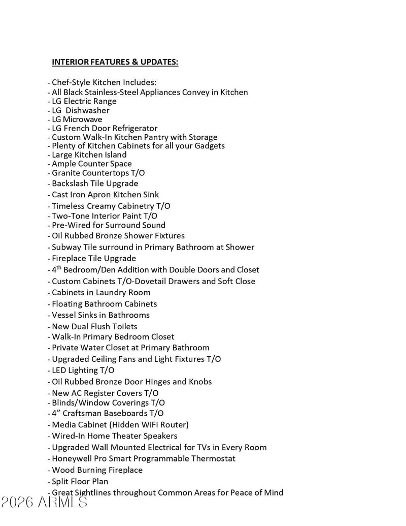Inside, vaulted ceilings and abundant natural light highlight the desirable open layout. The entire home features wood-look tile flooring, 4'' Craftsman baseboards, two-tone interior paint, updated LED lighting, ceiling fans, new AC register covers, oil-rubbed bronze hinges and hardware, and wall-mounted TV electrical in every room. The living space is anchored by a cozy fireplace with upgraded tile and wired-in home theater speakers plus a custom media cabinet with hidden WiFi router for a clean, modern look.