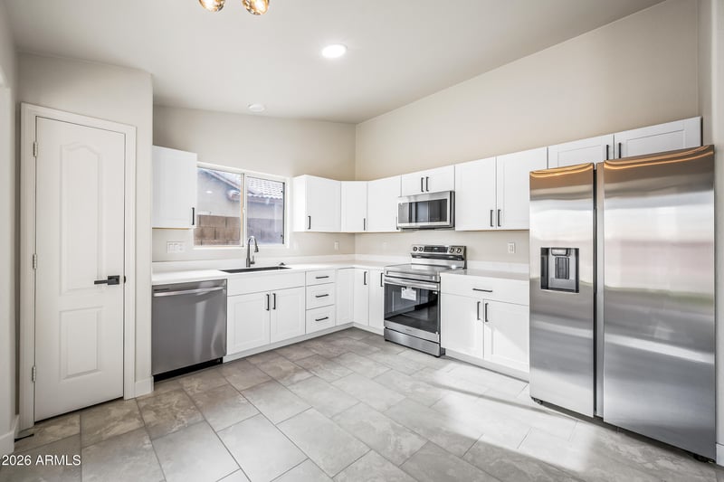 The updated kitchen includes modern cabinetry, new counters, updated hardware, and all-new stainless steel appliances, making it a great space for both everyday living and entertaining.