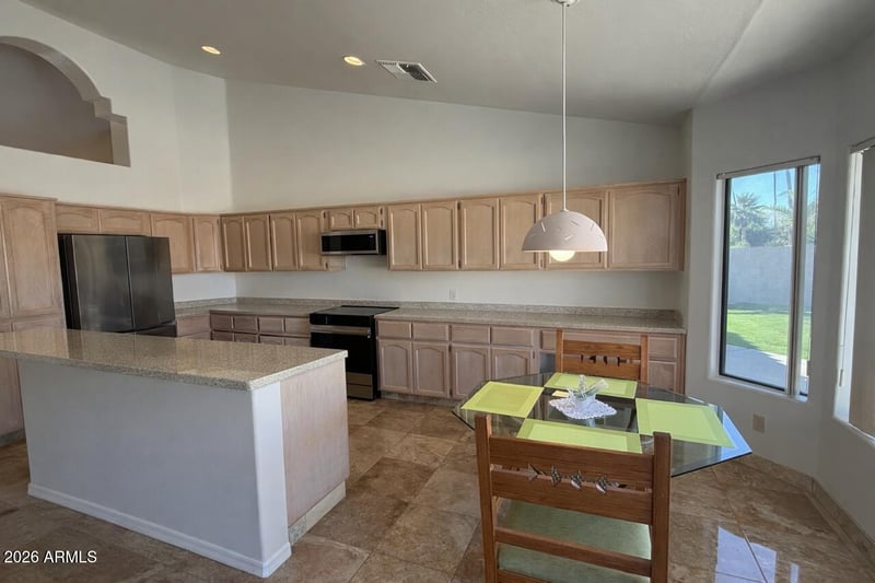 Listing details for 1450 Key Largo Ct, Gilbert, AZ 85233 : Waterfront SINGLE LEVEL, located in the picturesque town of Gilbert AZ in the highly desirable community of The Islands. Home boasts vaulted ceilings, formal dining and living areas, plantation shutters, plenty of storage and more! As you enter, you'll be greeted by a spacious and open floor plan that seamlessly flows from room to room. The living room boasts vaulted ceilings, large windows that offer breathtaking views of the lake, The open kitchen offers new matching appliances, and a large island with a breakfast bar. The large primary bedroom includes an ensuite with double sinks, walk-in shower, and spacious walk-in closet. With four bedrooms and a den this home provides ample space for relaxation and entertainment.