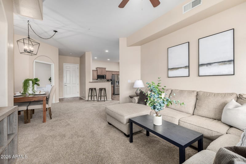 Listing details for 14575 Mountain View Blvd #10116, Surprise, AZ 85374 : Looking for the perfect condo in the North West Valley?This is it! Conveniently located close to dining, shopping and Loop 303! Step inside this first level unit to fall in love with the inviting and bright layout featuring 2 large bedrooms, 2 full bathrooms and a den.Whip up your favorite dishes in the kitchen featuring updated appliances,cabinets with crown molding and a spacious breakfast bar. Relax in the primary suite, which includes a bathroom with double sinks and a roomy walk-in closet.The den is perfect for a playroom or an office. Enjoy your morning coffee under the cozy covered patio, and don't forget to visit the community pool, theater, clubhouse, spa, workout center. This beautifully maintained first-floor unit offers comfort and convenience ready for you to make it your own!