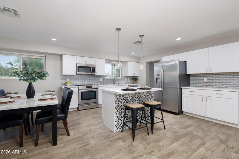 Listing details for 1458 Key Cir, Mesa, AZ 85210 : Welcome to this beautifully updated home featuring fresh interior and exterior paint, brand new carpet, and a functional 4 bedroom, 2 bathroom layout on a spacious corner cul-de-sac lot. Inside, you'll find a modern open feel with quartz countertops, a large island perfect for gathering, and stylish finishes throughout.