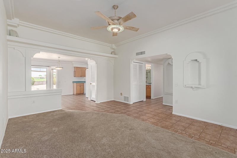 Listing details for 14610 Bolivar Dr, Sun, AZ 85351 : NO HOA! GOLF COURSE LOT. Enjoy panoramic golf course views from this beautifully maintained Del Webb 3-bed, 2-bath home on the 13th fairway of Palmbrook Golf Course in Sun City! This single-level gem features tile in all the right places, crown molding, and neutral paint. The kitchen boasts wood cabinetry, built-in appliances, ample counter space & a picture-perfect view of the course. Step outside to a spacious covered patio ideal for relaxing or entertaining while watching Arizona's stunning sunsets. Located in an active 55+ community w/ access to pools, spas, tennis, pickleball, fitness centers & countless social clubs. Close to dining, shopping, medical, P83, Arrowhead, & freeway access—this one checks all the boxes!