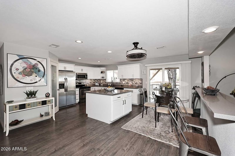 Listing details for 14619 Love Ct, Fountain Hills, AZ 85268 : Unobstructed mountain views! Beautifully updated home with an open-concept kitchen featuring eat-in dining, breakfast bar, Quartz countertops and large island, ample storage, and a walk-in pantry. Built-in workspace with sliding barn door, ideal for a home office or study nook. Just off the kitchen, enjoy a functional patio area perfect for your BBQ grill. The inviting living room offers a cozy wood-burning fireplace. Spacious primary bedroom includes a barn door entry to the sizeable walk-in closet and a private balcony with jaw-dropping Four Peaks mountain views. Flexible ''hidden'' bonus/storage room adds versatility. Step outside to a peaceful backyard with a sparkling pool, mountain views, pergola-covered patio, and extended paver patio--ideal for relaxing or entertaining. Act quick!