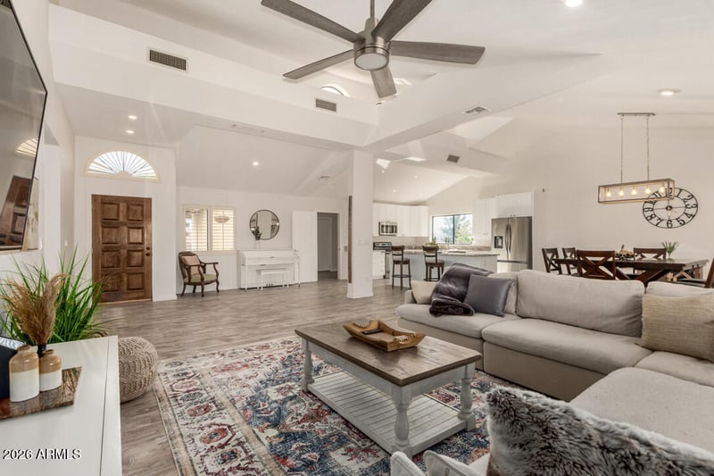 Listing details for 14642 Fairlynn Dr, Fountain Hills, AZ 85268 : Turnkey Remodel on Elevated Lot with Mountain Views from both the front and back of the home. This beautifully remodeled 3-bedroom, 2-bath residence features 2,170 sq ft of open-concept living with vaulted ceilings, abundant natural light, and luxury plank flooring throughout. The fully renovated 2025 kitchen showcases white cabinetry, granite countertops, and updated appliances, opening seamlessly into the great room and dining area--perfect for entertaining while enjoying the surrounding mountain scenery. Both bathrooms were fully remodeled in 2025 with new fixtures, finishes, and ceramic tile flooring. Major recent upgrades include HVAC (2024), electrical panel (2024), interior paint and doors (2025), LED lighting and ceiling fans (2025), and a laundry and pantry addition (2025).