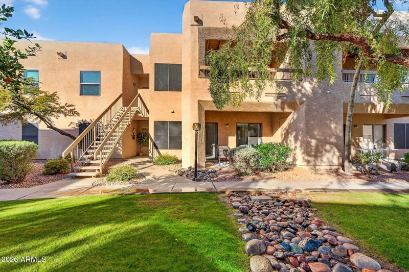 Listing details for 14645 Fountain Hills Blvd #105, Fountain Hills, AZ 85268 : Enjoy carefree living in Fountain Hills with this charming GROUND-FLOOR 1-bedroom, 1-bath condo in the desirable Villas at Club Mirage community. Listing comes fully furnished. This well-maintained unit offers comfort and convenience with an open layout, stylish quartz countertops, and updated appliances. Hardwood flooring in the main areas and plush carpet in the bedroom add warmth and function. Step out onto the covered patio with peaceful greenbelt views—perfect for morning coffee or evening relaxation. Ideally located near shopping, dining, and everyday conveniences, with easy access to local recreation and entertainment.