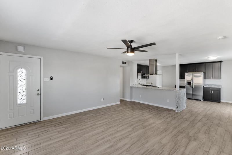 Listing details for 14650 54th Ave, Glendale, AZ 85306 : Timeless charm with modern updates--move-in ready and full of potential! This beautifully updated 3 bedroom, 2 bathroom home blends classic character with modern style. Thoughtfully refreshed throughout, it offers updated flooring and a remodeled kitchen designed for today's living. The kitchen stands out with large, elegant black cabinets that provide both striking style and generous storage space--perfect for everyday cooking and entertaining. Step outside to a spacious backyard ready for your vision, whether that means expansion, gardening, outdoor entertaining, or creating your own private retreat. With its move-in ready condition and plenty of room to customize, this home offers the perfect balance of comfort, style, and opportunity!