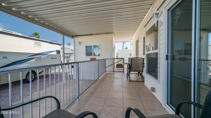 Listing details for 148 Limestone Dr #148, Apache Junction, AZ 85119 : This beautiful 2007 Cavco is ready and waiting for you to make yours. Step onto the spacious tiled deck, the perfect spot to relax, unwind, & take in those stunning Arizona sunsets, while the high carport easily accommodates larger vehicles & includes convenient storage drawers tucked neatly underneath. Inside, you will love the open concept floor plan featuring vaulted ceilings & well cared for solid surface flooring throughout, complemented by a drywall finish & updated interior paint that give the home a modern, clean, & inviting feel. Double pane windows with modern wood look blinds fill the space with natural light, creating a bright & welcoming atmosphere. The kitchen comes complete with a full size stove, generous storage space, & a skylight that enhances the airy ambiance. The full bathroom also features a skylight for lots of natural light & a desirable walk in shower. The bedroom offers built in storage & a queen size bed, and plenty of closet space. The raised shed (on the same level of the park model) provides that ideal space with extra insulation & valuable bonus space, complete with a 1/2 bath & a stacked washer/dryer, making it ideal for a hobby room, guest area, or additional living space. A big ticket upgrade you will truly appreciate is the updated AC system that is only a few years old! With this community you own the land! Located in the highly desirable Golden Vista community, you will enjoy resort style amenities, an active social scene, & a warm, welcoming atmosphere that makes it easy to feel right at home. Arizona truly shines this time of year, & this charming home is ready to be your perfect winter retreat.
