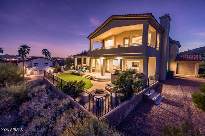 Listing details for 14829 18th Pl, Phoenix, AZ 85022 : Welcome! Situated on an elevated lot with natural desert open space that protects the panoramic mountain and city-light views while providing added privacy from neighboring home. Soaring ceilings, wood & travertine floors, and expansive windows frame the dramatic landscape. New appliances adorn the kitchen. Enjoy theater room with projector and tiered seating plus a versatile office with Murphy bed and built-ins. The primary suite offers a private balcony and sweeping valley views. Outdoor living includes a covered patio, firepit, and refreshed desert landscaping with new drip system. With exterior paint & window reglazing scheduled, and trail access just steps away, this home offers exceptional value and lifestyle in one of North Phoenix's most scenic hillside communities.