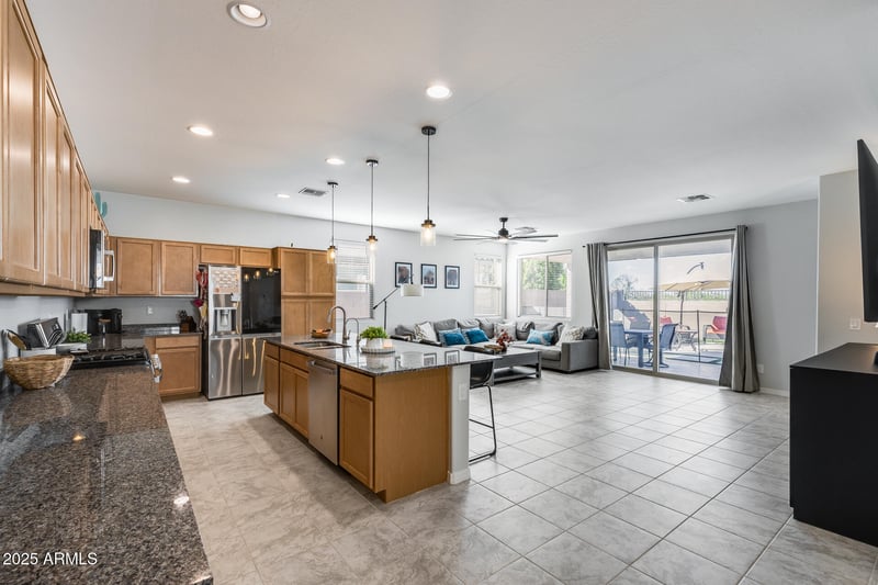 Step outside to an upgraded backyard oasis, complete with a travertine patio, low-maintenance artificial turf, and a heated poolperfect for enjoying Arizona's sunshine and unforgettable desert sunsets.