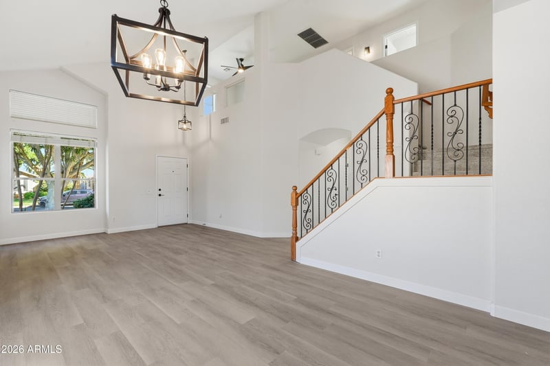Listing details for 1491 Blue Ridge Way, Chandler, AZ 85248 : Beautiful WATERFRONT LIVING in the highly desirable Ocotillo community, offering stunning views and an inviting, updated interior. This 3 bedroom, 2.5 bath home features fresh interior paint, new baseboards, and new light fixtures that create a bright, modern feel throughout. The kitchen has been refreshed with updated cabinets and opens to the main living areas, where large windows and sliding doors capture serene water views and fill the home with natural light. Bathrooms have been updated with clean, contemporary finishes, and the spacious layout provides comfortable living and entertaining spaces. Step outside to a backyard designed to enjoy the scenery, with peaceful waterfront views creating the perfect setting to relax or host gatherings.