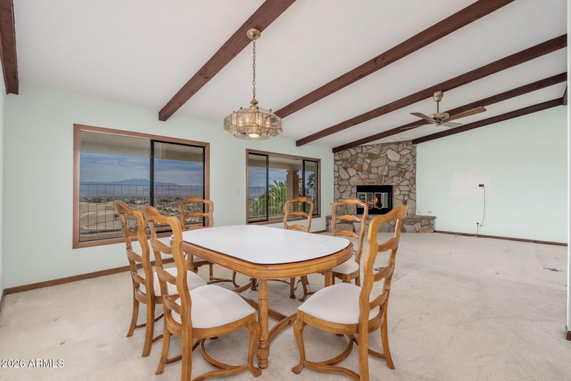 Listing details for 14930 Golden Eagle Blvd, Fountain Hills, AZ 85268 : Rare opportunity in the highly desirable Golden Eagle community! Situated on an exceptional view lot with breathtaking panoramic mountain views and crystal-clear sightlines to Four Peaks, this original single-level 1980s home offers endless potential to renovate, reimagine, or build your dream property. The living room features dramatic vaulted ceilings with exposed beams, creating a spacious architectural centerpiece filled with natural light. Homes with this location, views, and potential rarely become available. Tremendous opportunity for investors, renovators, or buyers looking to create something truly special in one of Fountain Hills' most coveted neighborhoods.