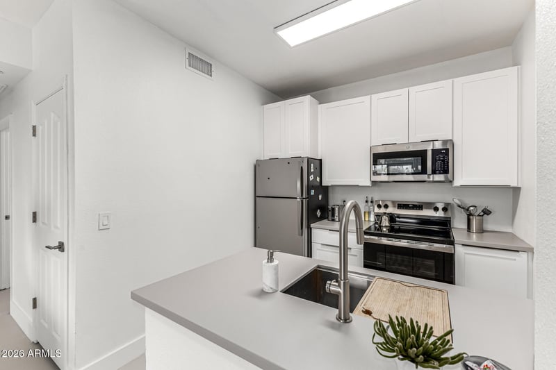 Listing details for 14950 Mountain View Blvd #5107, Surprise, AZ 85374 : Welcome to this fabulous 1-bedroom, 1-bathroom condo in the highly desirable Grand Solana community. Conveniently located on the sought-after first floor, this beautifully remodeled unit offers comfort, style, and effortless living.