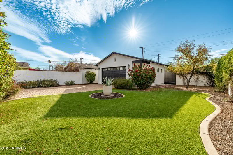 Listing details for 1501 Earll Dr, Phoenix, AZ 85014 : Stunning home in the historic Cheery Lynn neighborhood, ideally located in the heart of Central Phoenix near the Phoenix Country Club & golf course. Completely rebuilt in 2009, this gorgeous home features fresh interior and exterior paint, a new 2023 HVAC system, and striking new desert landscaping. The bright, open floorplan offers expansive living and dining areas filled with natural light, perfect for entertaining. The spacious kitchen showcases quartz countertops, stainless steel appliances, a gas range, & a large island with breakfast bar seating. The oversized primary suite includes a beautiful, luxurious bathroom. Outdoor highlights include a shaded side patio, extended paver driveway, detached 2.5-car garage, & a lush grassy backyard with mature landscaping. Much more! The main home HVAC system was replaced in 2023, and the split system in the garage was added in 2022. Insulation was added to the garage ceiling and walls to improve the efficiency of the split unit and maintain a comfortable temperature. The garage door is also insulated. The garage ceiling insulation is accessible through a doorway that was specifically created to provide access for adding or maintaining insulation. These improvements to the spacious detached garage make this an ideal space for a workshop, craft studio, or possible casita! Additionally, when the heat pump HVAC system was installed in the main home, an air scrubber was added, and the ducts were cleaned and sealed. Prime Phoenix location close to downtown, sports facilities, hospitals, easy access to Sky Harbor Airport, along with endless shopping, dining, and entertainment! This is a rare opportunity to own a gorgeously updated home in one of Phoenix's most charming and convenient neighborhoods!