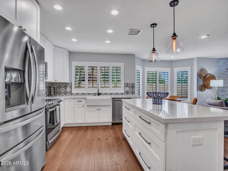 Listing details for 15017 49th St, Scottsdale, AZ 85254 : Stunning high-end remodel in a prime location! This 3Bed/ 2Bath home showcases an open concept floorplan with wide plank flooring and designer finishes throughout. Chef's kitchen features quartz countertops, custom shaker cabinetry, oversized island and stainless appliances. Spacious great room with fireplace opens to a resort-style backyard with heated pool, extended covered patio and plenty of room to entertain. Bathrooms fully remodeled with modern finishes. Newer roof and HVAC units. Situated on a rare .329 acre lot with RV gate, large side yard and premium curb appeal. Ideal for luxury living, second home or high-performing short-term rental. This home is dialed in absolutely perfect. Turnkey opportunity - Custom furnishings, décor, and accessories are available outside of escrow.