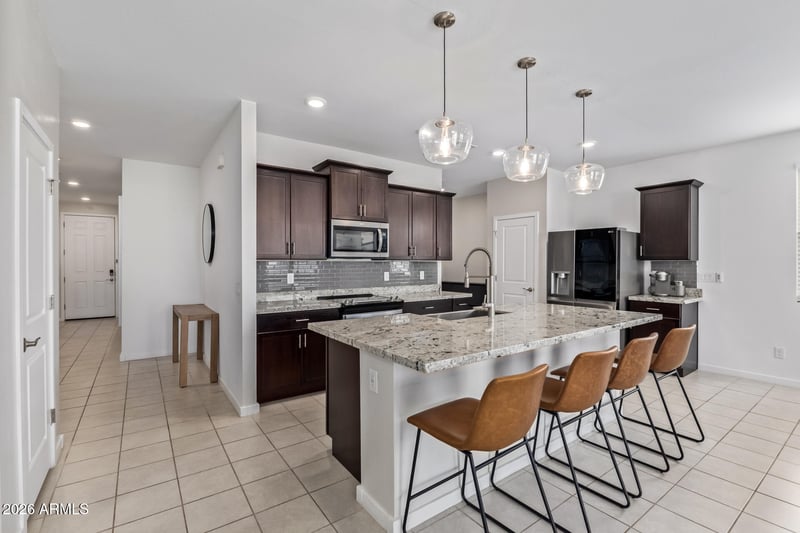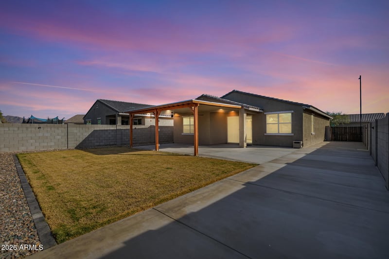 Listing details for 1510 224th Ln, Buckeye, AZ 85326 : Conveniently located just minutes from I‑10, this move-in-ready home offers easy access to Costco and the exciting new shopping and dining options coming off Verrado exit. Built in 2022 in the highly desirable Coyote Ridge community of Buckeye, this 3-bedroom, 2-bath home features a paver driveway, 2-car garage, and RV gate. The kitchen is designed for both everyday living and entertaining, with granite countertops, a tile backsplash, ample cabinetry, a pantry, and a large island with seating. A split-bedroom layout provides privacy for the primary suite. Outside, enjoy an extended covered patio and a spacious backyard, perfect for relaxing or hosting gatherings. This well-maintained home blends comfort, convenience, and value in a growing Buckeye neighborhood.