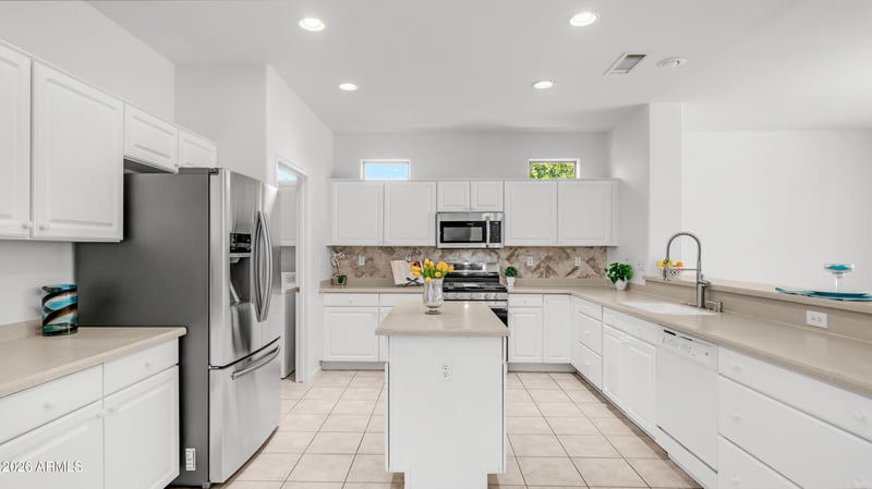 Listing details for 15109 Rounders Dr, Surprise, AZ 85374 : This luxurious, move-in-ready home features a stunning chef's kitchen w/center island, breakfast bar, Corian counters, Walk-in Pantry. The private DEN/ Office has a double-door entrance.*BRAND NEW HVAC, NEWER WATER HEATER, FRESH PAINT INSIDE& OUT* Primary Suite Boasts Dual vanities, Walk-In shower, Bay Window, water closet,& large walk-in Closet. *BONUS THIRD CAR GARAGE!*Extended, Large Covered Rear Patio to relax outside.The Laundry room has a convenient wash-basin. Ceiling Fans.Enjoy this beautifully maintained home where you will find a spacious, & bright Open layout w/formal living & dining areas.