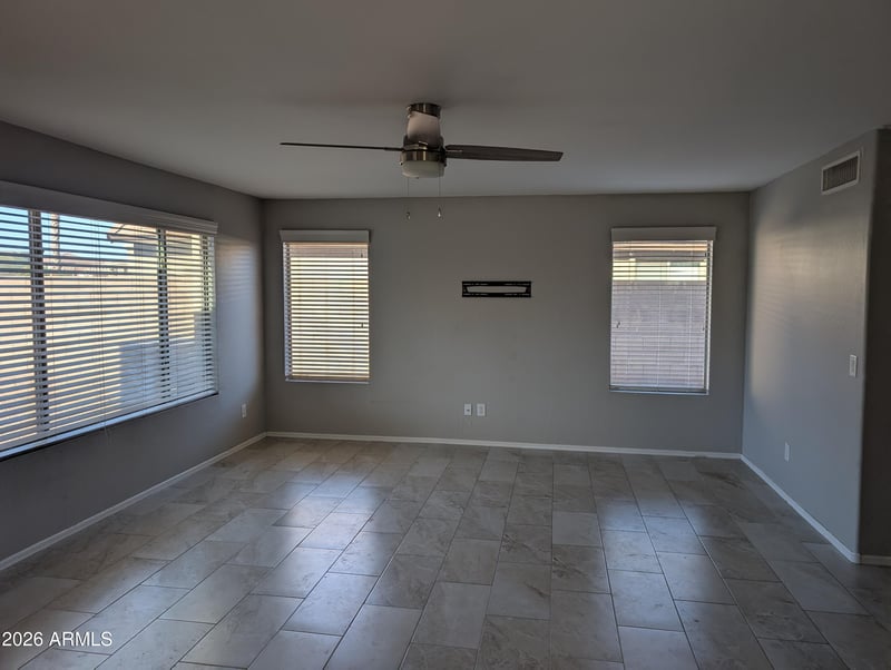 Listing details for 15135 Smokey Dr, Surprise, AZ 85374 : Amazing location! Ideally situated near the ballpark, community pool, and library, with convenient access to schools, shopping, dining, and beautiful neighborhood parks. This spacious 4-bed, 2.5 bath home features a fantastic floor plan with two separate living areas, including a front living room with soaring vaulted ceilings. Upstair guest bathroom fully remodeled, Primary bath has recently updated floors and tiled walls.