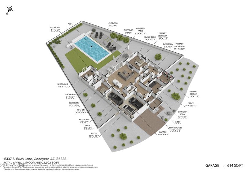 15137 186th Ln, Goodyear, AZ 85338 and is listed for sale at $915,000.00. This home was built in 2024, contains 2602 square feet of living space, and sits on a 0.3 acre lot. This residential home is priced at $351.65 per square foot.