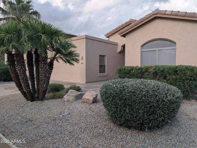 Listing details for 15151 100th Way, Scottsdale, AZ 85260 : [Sellers are motivated and will consider all written offers] New carpeting, kitchen sink, and exterior paint (November 2025). This charming single family Residence in Mirada at Scottsdale Horizon backs to the Central Arizona Project Canal and is surrounded by mature trees. Travertine tile floors and baseboards; laminate floors in great room off the kitchen; maple cabinets, granite tile countertops, stainless steel hardware, sink & appliances, open design kitchen with breakfast bar; large, master bath with soaking tub, (tumbled stone surround) and shower w/glass doors, dual vanities and two master closets. Sliding door to covered patio and extended seating area. Private back yard with mature landscaping.