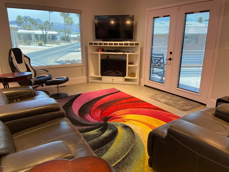 Listing details for 1523 Omaha Dr, Apache Junction, AZ 85119 : Best of the best on a spacious corner lot with many beautiful upgrades! Nothing was held back on this large winter retreat in the most sought-after 55+ golf course community where you can own the land! Ample parking, golf cart storage garage INCLUDING the golf cart! No interior steps, Superstition Mtn. views, large kitchen, and a sunny porch just made for entertaining! Custom stucco exterior finish, water feature entrance. This beauty will impress. Free community tours available.