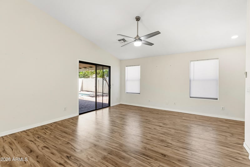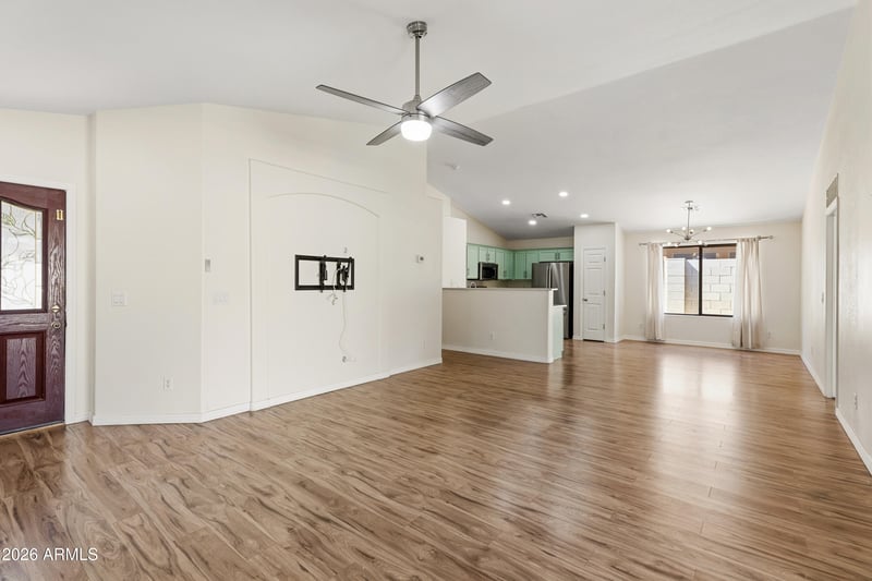 Listing details for 15234 Polk St, Goodyear, AZ 85338 : Nestled in the desirable Rancho Mirage community, this 4-bedroom/2-bath home features an updated kitchen and a spacious living room ideal for entertaining or relaxation. The split floor plan includes a generous primary bedroom with an en-suite bathroom and a walk-in closet. Enjoy a private backyard oasis with a covered patio, sparkling pool, synthetic grass, and pavers. Goodyear offers convenient access to a variety of shopping centers, diverse restaurants, and major highways like I-10 and Loop 303--making commutes to Phoenix and beyond effortless.