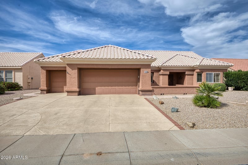Listing details for 15240 Via Montoya --, Sun City West, AZ 85375 : This Chandler has great curb appeal. Inviting entry with double doors opens into the foyer with the large flexible living/dining space with newer laminate wood flooring. The spacious kitchen has plenty of cabinets, newer stainless appliances, gas range, Corian countertops, a huge pantry with double doors and pull-outs, beautiful pendants over the breakfast bar and a convenient dining nook. The primary suite has a lovely bay window and vaulted ceiling in bedroom, double sinks, large walk-in shower with updated fixtures and a raised toilet in the ensuite bath. The guest bedroom has lots of built-ins, including a Murphy bed and LED lighting, offering plenty of options as craft/sewing room or office. Other features include plantation shutters, ceiling fans and 6 panel interior doors. Plenty of windows and a large patio door slider with double security doors opens onto a large, expanded covered patio. A second patio area located to the left, outside of the primary suite is complete with electric retractable awning w/newcanvas (2024). The backyard, fenced with wrought iron on block, has four mature fruit trees offering a variety of citrus. Enjoy the bounty of lemons, Washington navels, Arizona sweet oranges and tangelos. The large inside laundry room has a newer washer and dryer, a sink, lower and upper cabinets for plenty of storage, leading into the garage. The 2.5 car garage is well lit with LED lights and offers plenty of space for cars, golf cart, storage, work space and lots of cabinets. HVAC and Roof were replaced in 2018. Soft water unit is new as of 2024. Water heater was replaced in 2024.