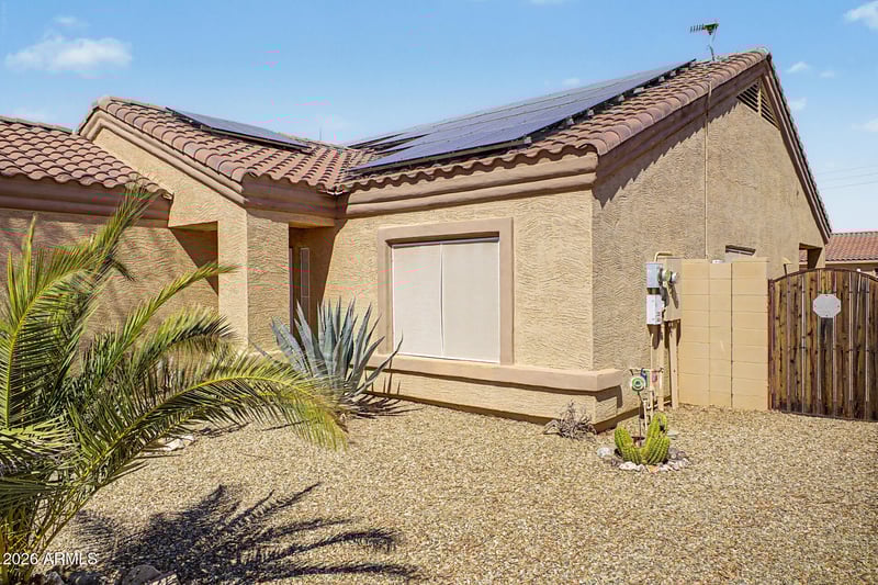 Listing details for 15241 Cherry Hills Dr, Arizona City, AZ 85123 : No HOA! Yes RV Parking with 50 amp hook-up! Owned solar with NO payments! A well-built 11'x15' shed with electric outlets everywhere, upper cabinets and newer exterior paint. A 2025 New Trane HVAC! A 2026 New water heater! A 2025 New garbage disposal! Over 2 years on a Green Mantis termite warranty transfers at closing too. This home has been well maintained and ready for you to make it your own. This energy-efficient home features a bright, open great room with vaulted ceilings, spacious living and dining areas, and a large kitchen with a center island and stainless steel appliances. There are two bedrooms (a big one with its own side entry). The master suite with vaulted ceilings has an updated en-suite and overlooks the large covered patio with low-maintenance backyard. USDA Eligible!