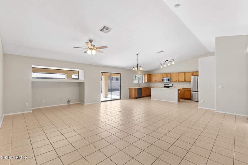 Inside, soaring vaulted ceilings, custom paint tones, and elegant plantation shutters. The open-concept floor plan creates a seamless flow between living, dining, and kitchen areas--perfect for entertaining or everyday comfort.