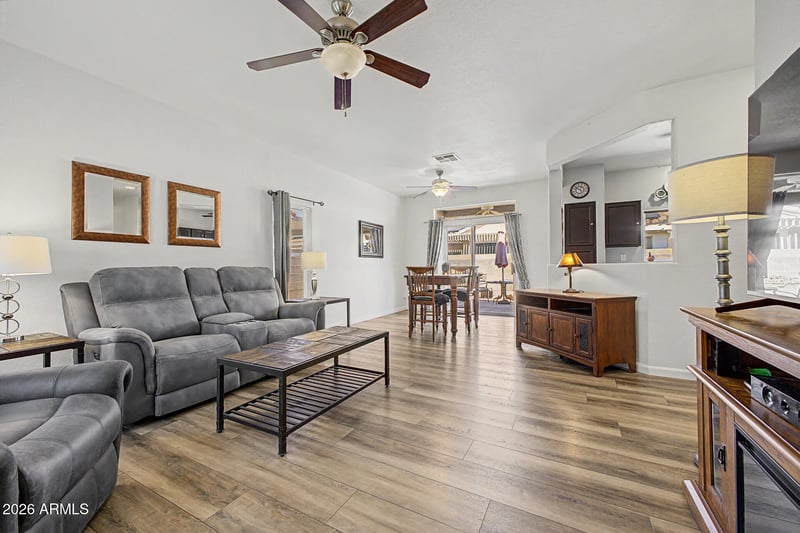 Listing details for 15354 Arzon Way, Sun City West, AZ 85375 : Welcome to easy, low-maintenance living in the highly sought-after 55+ community of Sun City West! This beautifully updated 2-bedroom, 2-bathroom single family home offers the perfect blend of comfort, style & peace of mind, all in a thoughtfully designed 1084 s.f. floor plan.