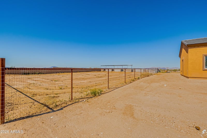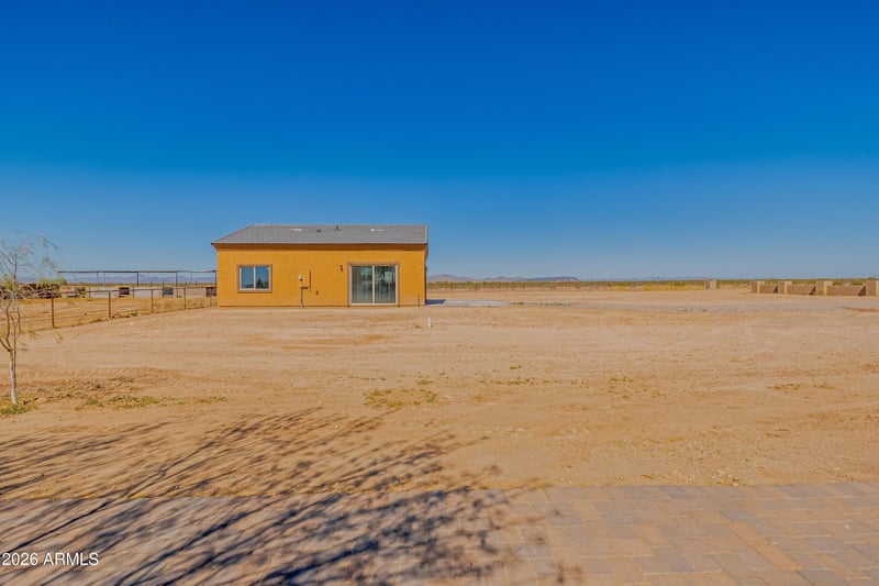 Listing details for 1538 382nd Ave, Tonopah, AZ 85354 : Beautiful casita style home featuring elegant wood-look tile flooring throughout and spacious bedrooms. The property is fully enclosed with block fencing in both the front and back yards and includes horse corrals, perfect for equestrian use. This versatile property offers multiple possibilities move in and enjoy it as your main home, or build a larger residence and use the existing home as a charming guest casita.