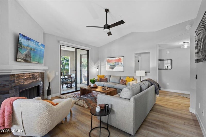 Listing details for 15380 100th St #2104, Scottsdale, AZ 85260 : Beautifully remodeled 2-bedroom, 2-bath condo in a desirable Scottsdale location. This move-in ready home has been completely updated from top to bottom, featuring new flooring, fresh paint, a fully renovated kitchen with high-end appliances, and beautifully upgraded bathrooms. All fixtures and blinds have been thoughtfully replaced, creating a modern and cohesive feel throughout. The open living space flows out to a private balcony with additional storage and peaceful views--perfect for relaxing mornings or evening unwinding. The split-bedroom layout offers privacy and functionality for guests, roommates, or a home office. Enjoy access to community amenities including a pool, jacuzzi, tennis court, and walking paths. Ideally located directly across the street from pickleball courts and a dog park, and just minutes from Scottsdale's popular dining, shopping, golf, and entertainment. Perfect as a full-time residence or seasonal getaway.