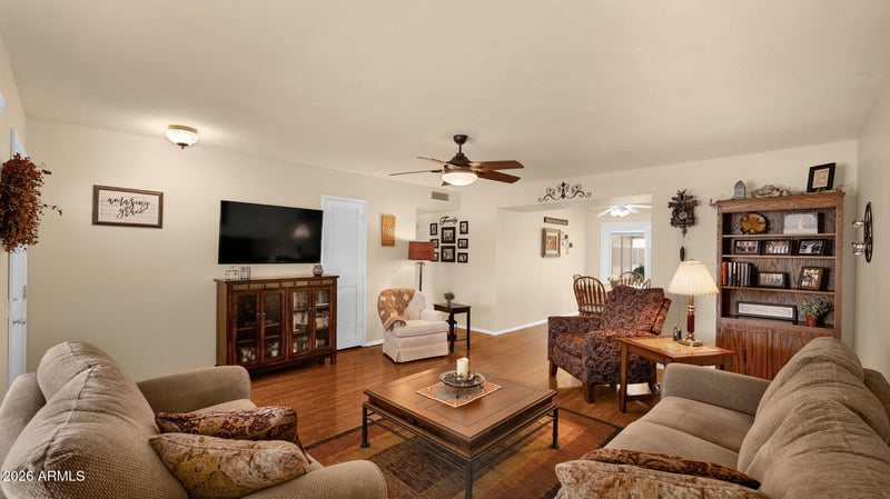 Listing details for 15401 Lakeforest Dr, Sun, AZ 85351 : Enjoy easy living in this beautifully updated duplex home in the heart of Sun City's desirable 55+ community. The remodeled kitchen features granite countertops and stainless steel appliances, while wood laminate flooring adds warmth and durability throughout. New windows enhance comfort and energy efficiency. Both bedrooms are generously sized, and the updated bathrooms include granite countertops. Relax year-round in the large screened-in porch—ideal for morning coffee or evening gatherings. Additional upgrades include new interior and exterior doors and a 1.5-car garage with space for a golf cart. Move-in ready and designed for low-maintenance living. Furnishings are available for purchase on a separate bill of sale.