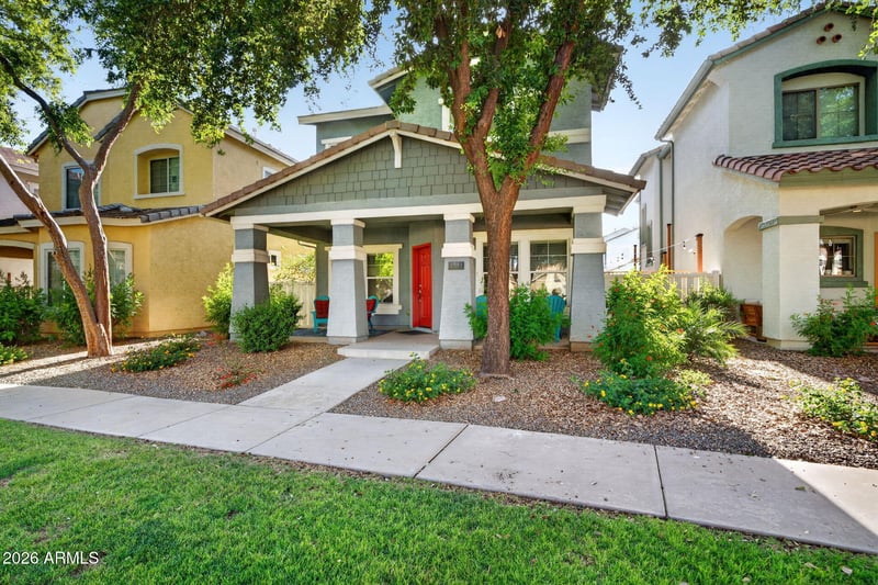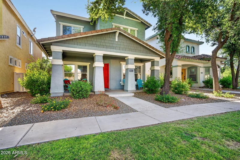 Listing details for 1541 Malabar Ln, Gilbert, AZ 85296 : Located in the highly sought-after Agritopia community, this updated cottage-style home offers the perfect blend of charm, comfort, and one of the best walkable lifestyles in Gilbert. The 1,464 sq ft floor plan features tile flooring downstairs, hardwood flooring upstairs, neutral paint, and a bright move-in ready feel throughout. The kitchen is complete with quartz countertops, ample cabinetry, and opens seamlessly to the main living area, making it ideal for both everyday living and entertaining. The bedrooms and bathrooms are well maintained with a clean and timeless design. What truly makes this home special is the location within Agritopia. Residents love the tree-lined streets, community events, parks, and the unique neighborhood atmosphere that is hard to find anywhere else in the East Valley. The community is centered around its famous urban farm and community gardens, creating a rare farm-to-table lifestyle feel right in the heart of Gilbert. Just a short walk or bike ride away is Barnone where you can grab wood-fired pizza, enjoy a glass of wine or local beer, or spend time at one of the artisan shops. You are also within walking distance to Joe's Farm Grill, local coffee spots, and the popular Epicenter at Agritopia featuring favorites like Buck & Rider and The Mission. This is a rare opportunity to enjoy a true live-work-play lifestyle in one of Gilbert's most desirable neighborhoods.