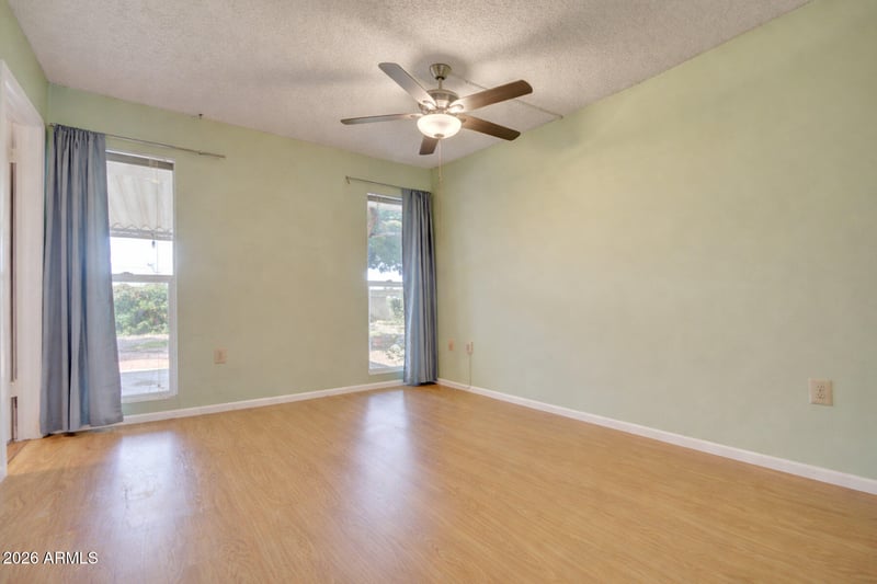 Listing details for 15416 Ridgeview Rd, Sun City, AZ 85351 : Paid off Solar ** Well maintained 3 bedroom, 2 bathroom Sun City Home ** Property offers practical updates and functional living space, ready for its next owner ** Solar was added in 2020 and newer AC unit (2020), helping with energy efficiency and long-term value ** The enclosed Arizona room adds flexible space that can be used for a sitting area, hobby room or additional storage ** Situated on a large corner lot ** Backyard offers large covered patio, mature trees and fully fenced backyard perfect for entertaining •• 2 car garage with separate golf cart garage, built in cabinets, providing additional storage and workshop potential **Conveniently located near shopping, entertainment and so much more!
