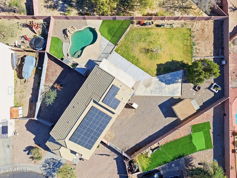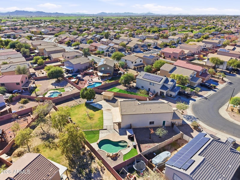 Listing details for 1543 218th Ave, Buckeye, AZ 85326 : Set on one of the largest lots in Sundance, this 4-bedroom, 3-bathroom home offers 2,469 sq ft of flexible living with exceptional outdoor space ready to watch the Arizona sunsets. The oversized 14,000+ square foot lot is thoughtfully divided into distinct areas, including a fenced pool, basketball court, and expansive open yard space with a storage shed, which is great for gardening, relaxing, play, and more!