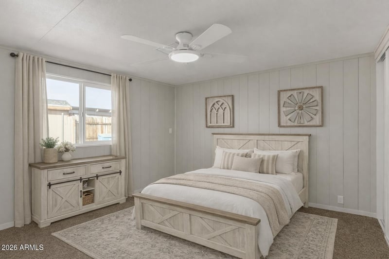 Listing details for 15431 16th Dr, Phoenix, AZ 85023 : Seize the chance to own this 3-bedroom mobile home with no HOA! You're welcomed by a convenient carport, a low-maintenance desert landscape, and an inviting covered patio for outdoor relaxation. Discover a renovated interior featuring an appealing open layout with a soothing palette and stylish wood-look flooring. The updated kitchen boasts crisp white shaker cabinets, quartz counters, recessed lighting, and sleek stainless steel appliances for a delightful cooking experience. The main bedroom offers soft carpeting, a built-in closet with mirrored doors, and a private toilet for added comfort. Craft your dream outdoor retreat in the backyard. With no HOA restrictions, you'll have the freedom to innovate and personalize your space. Take advantage of this chance to make this yours!