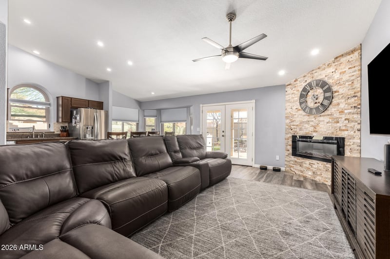 Listing details for 15431 22nd St, Phoenix, AZ 85048 : Immaculate, fully remodeled home situated on a lush corner lot in a quiet cul-de-sac! Featuring newer upgrades throughout, including a new roof, solar system, and new windows. Enjoy the electric fireplace and an open-concept kitchen, living, and dining area—perfect for modern living and entertaining. The den has been converted into a fourth bedroom, offering added flexibility. Light and bright interior with thoughtful updates throughout!