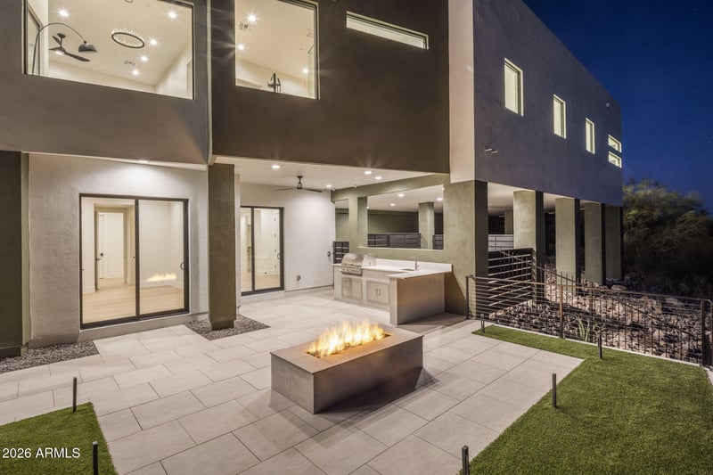 Listing details for 15431 Palatial Cir, Fountain Hills, AZ 85268 : Introducing a 2026 masterpiece by Picasso Homes, nestled within the exclusive gated enclave of Palatial Estates in Fountain Hills. This striking modern-contemporary residence seamlessly blends architectural sophistication with elevated everyday living. Spanning two thoughtfully designed levels. The primary suite is privately situated on the main level, creating a true retreat complete with a serene sitting area and spa-inspired bath. Designed for both grand entertaining and comfortable living, the main floor features a formal dining room, a dedicated office, and an expansive open-concept kitchen outfitted with premium finishes and seamless flow into the living spaces, powder room, spacious laundry and key drop. Downstairs: 3 spacious bedrooms, each w/its own ensuite bath along with an an additional powder, a theatre room and versatile flex space with a built-in bar, refrigerator, and sink provide the perfect setting for hosting or relaxing. Be captivated by the sunsets from the walk out patio. Step outside to your own resort-style backyard, where a sparkling pool and spa, built-in BBQ, and multiple lounging areas invite year-round enjoyment under Arizona skies--all framed by stunning views. A 4-car garage completes the home, offering ample space for collectors and convenience alike. Rare opportunity to own a brand-new, design-forward luxury residence in one of the area's most known gated communities.