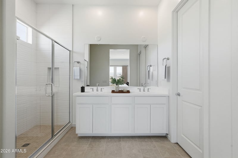 Listing details for 15444 182nd Ave, Goodyear, AZ 85338 : This beautifully designed single-level home with a charming ranch exterior offers 4 bedrooms, 3 bathrooms, and an open, light-filled floor plan perfect for everyday living and entertaining. The gourmet kitchen is equipped with premium Whirlpool stainless steel appliances, white cabinetry, marbled quartz countertops, and a large center island, flowing seamlessly into the spacious great room. Striking multi-stack sliding doors open to a covered patio and private backyard, creating the ultimate indoor-outdoor lifestyle. Qualified buyers can obtain a 4.99% fixed FHA or VA interest rate if close of escrow occurs before May 31st.