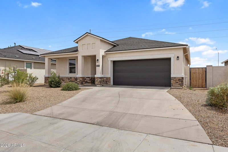 Listing details for 1545 Mason Dr, Casa Grande, AZ 85122 : MOVE-IN READY, LIKE NEW, OPEN CONCEPT! This beautifully maintained single-level home showcases a spacious open-concept layout designed for both everyday living and effortless entertaining. The modern kitchen features sleek stainless steel appliances, ample cabinetry, generous counter space, and a seamless flow into the main living area, creating a bright and inviting atmosphere. Enjoy clean finishes, neutral tones, and thoughtful design throughout a home that truly feels nearly new. The backyard offers a blank canvas with a dirt surface, ready for your vision--whether it's custom landscaping, a patio, or outdoor retreat. An excellent opportunity for homeowners or investors seeking comfort, style, and future potential.