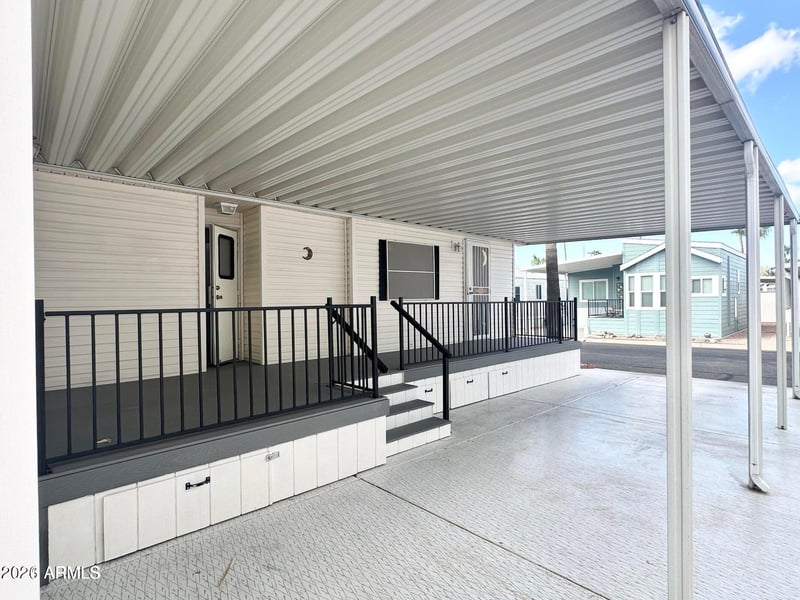 Listing details for 155 Limestone Dr #155, Apache Junction, AZ 85119 : TAKE A LOOK at this 1996 CHARIOT! 1 bed/1bath GREAT OPEN CONCEPT FLOOR PLAN w/U-SHAPED kitchen. WOOD look laminate flooring easy for cleaning. NICE SIZE bathroom w/ NEWER WALK IN SHOWER, good cabinet space for storage needs throughout. QUEEN SIZE bed ,mirrored closet doors & plenty of dresser drawer space. NEWER A/C UNIT in approx. 2020 & NEW HOT WATER HEATER about 2 years old. GREAT RESORT LOCATION, walking distance to CLUBHOUSE. FANTASTIC LARGE WEATHER TREX DECK w/ storage space below. PERFECT for relaxing & taking in the beautiful AZ weather. LARGE CARPOT allows plenty of room for parking. WAIT until you see the SIZABLE shed/hobby work area! GREAT for all your hobbies, office space and IDEAL for another area to relax! Perfect SET UP for guests to come visit! SEPARATE CLOSET SPACE offering washer/dryer for your convenience! This one's it all! NEW ROOF approx 4 years old. High vaulted ceilings, large windows & screen door to let the breeze in. If you love the outdoors this home is it! OWN THE LAND, OWN THE FUN in this highly sought after 55+RESORT. Pools, spa and tons of amenities to enjoy. Come live the life style you deserve!