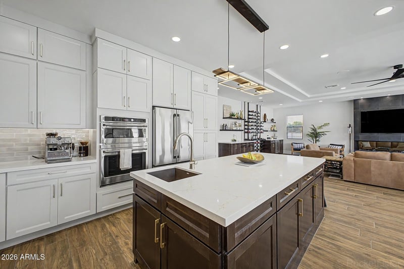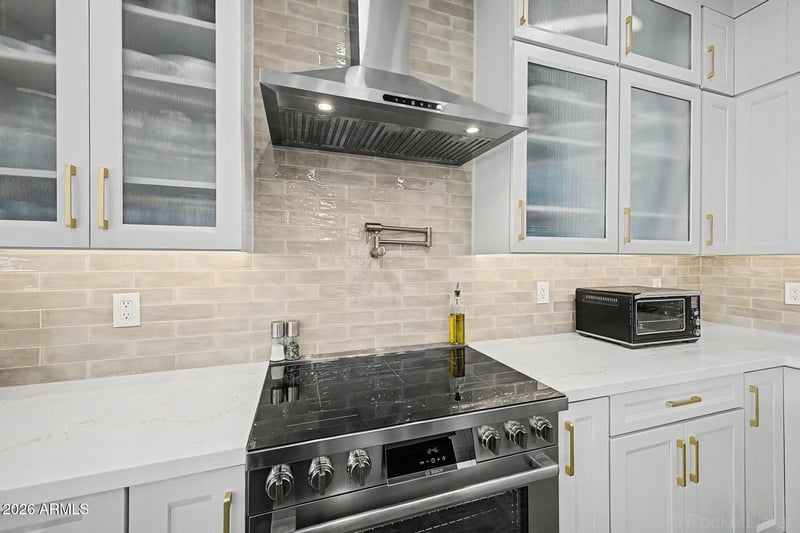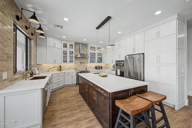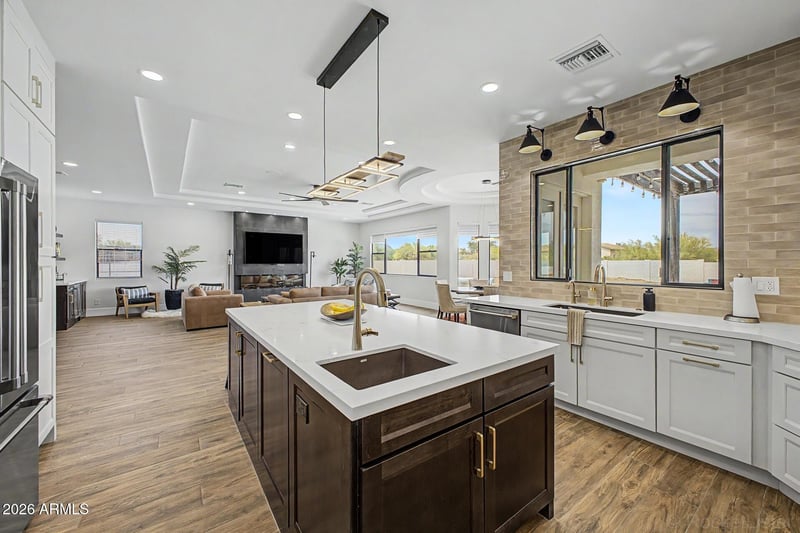 Listing details for 15512 Morning Vista Ln, Scottsdale, AZ 85262 : Turnkey luxury residence in North Scottsdale on a 1-acre lot. This custom home was fully remodeled inside and out, including a new roof, completed fall 2025. The 3,640 sq. ft. layout includes 4 bedrooms and a dedicated office, with fresh interior and exterior paint, new tile flooring, updated cabinetry and storage, and new energy-efficient lighting and fixtures. The remodeled chef's kitchen features an oversized quartz island and countertops, upgraded refrigerator and dishwasher, a Bosch induction cooktop, and double ovens with integrated microwave. Additional updates include remodeled bathrooms, a new R/O system, water softener, and water heater. Highlights also include a dry bar with wine rack and wine refrigerator, and a redesigned fireplace in the living room. The primary suite includes a fireplace, private sitting area, and an ensuite bath with custom walk-in shower, separate soaking tub, and an oversized closet. The sitting area includes a workout area/media room, additional storage, and a beverage refrigerator. Before 2025, the yard was developed into a backyard oasis with an oversized pool and Baja shelf, walls, bridges, and landscaping, plus two long driveways for RV parking and additional vehicles. A secondary backyard entrance leads to a manicured area with a fully tiled patio, pergola, and multiple seating areas.