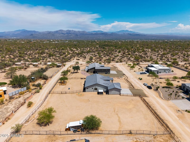 Listing details for 15532 Palo Brea Ln, Scottsdale, AZ 85262 : Bright and open with 12' ceilings, this spacious home features a flowing great room, chef's kitchen with quartz waterfall island, stainless steel GE appliances, and walk-in pantry. The split layout offers a private primary suite with dual sinks, soaking tub, walk-in closet, and barn door. Three guest rooms include a Jack & Jill bath and one en-suite. Enjoy indoor-outdoor living with dual sliders, covered patio, built-in misters, fenced yard, play area, chicken coop, and shed. Extras include LG washer/dryer, 3-car A/C garage with attic storage, and whole home water treatment system!