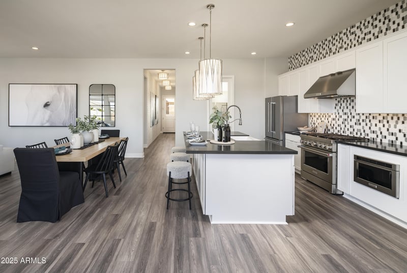 Listing details for 15540 182nd Ave, Goodyear, AZ 85338 : This professionally designed Model Home features 4 bedrooms, 2.5 bathrooms, a dedicated office, and an upstairs loft — all thoughtfully arranged across two spacious levels. The main floor offers an open great room with a cozy fireplace that flows into a designer kitchen with upgraded cabinetry, quartz countertops, and a large island. Upstairs, the spacious primary suite includes a walk-in closet and spa-inspired shower. The generous loft provides extra space for a media room, playroom, or lounge. A private office off the entry is perfect for working from home. Outside, enjoy a fully landscaped backyard with a sparkling pool and stylish pergola — ideal for year-round entertaining or relaxing. Filled with high-end finishes, this model home showcases the best in modern design and function.