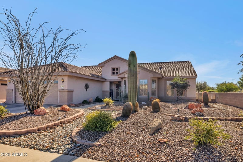 Listing details for 15563 Rockwood Way, Surprise, AZ 85374 : Showcasing quality upgrades throughout, this home features engineered hardwood flooring, plantation shutters, and stylish thermaformed European-style cabinetry. The well-appointed kitchen offers stainless appliances, granite countertops, a gas range, French-door refrigerator, and drawers that slide. Both bathrooms have been thoughtfully remodeled with granite counters & custom tile shower walls & flooring, creating a clean, upscale look. The primary suite includes a custom closet system and a bay window that enhances natural light & space, while an additional bay window brightens the breakfast nook. Enjoy Arizona living outdoors in the private backyard backing to a community common area for added privacy. The space is designed for entertaining with an extended patio cover, BBQ & firepit. Home may be purchased furnished, offering a convenient move-in-ready opportunity for full-time or seasonal living.