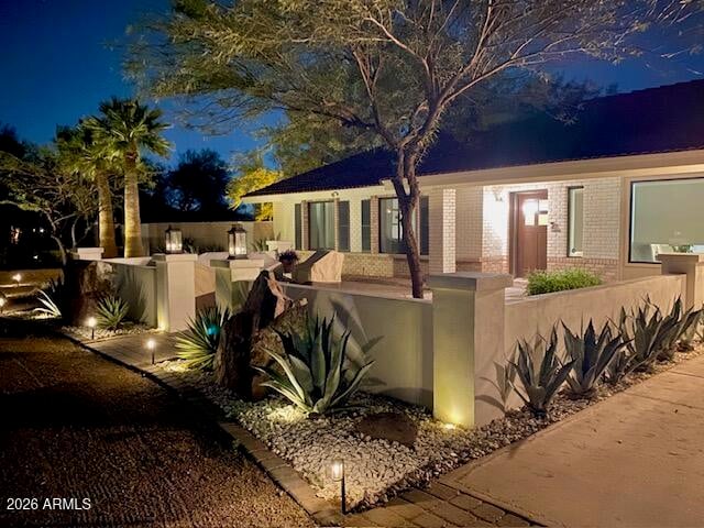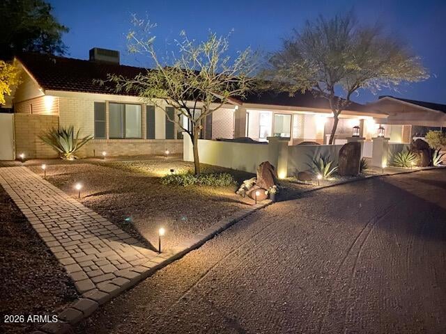 The front of the property has a large, paved courtyard, white corral fencing, double wide circle drive lined with lush hedges & shade trees creating a beautiful modern ranch style curb appeal. The property includes low maintenance desert landscaping with watering systems and paved sidewalks winding their way throughout the entire tree lined property front and back.